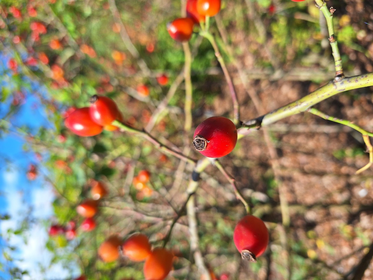 - De Hondsroos (Rosa canina): bloemen, bottels, blad en inheems.